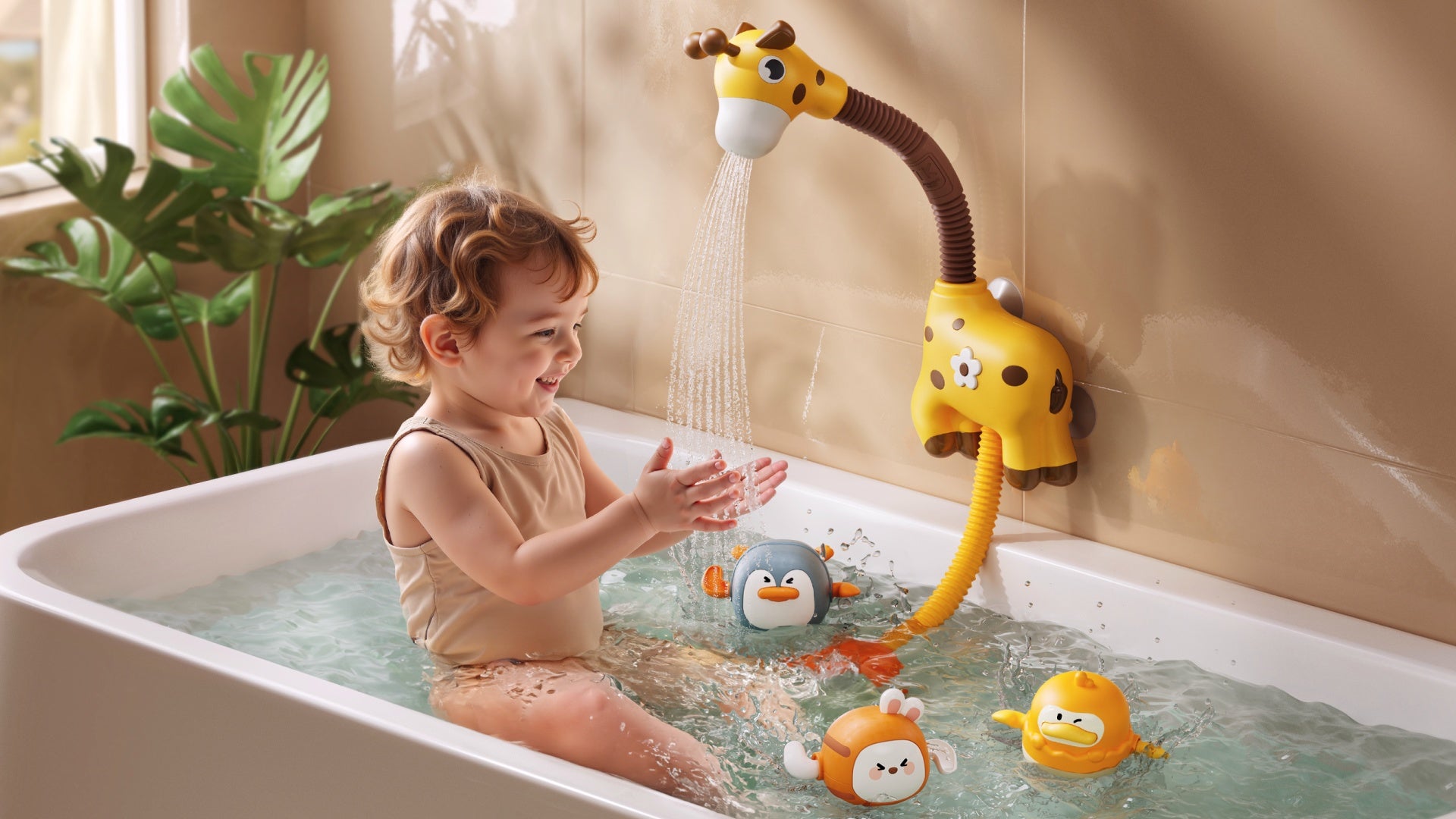 Jouet de bain pour bébé – Douche girafe et jouets aquatiques à remonter