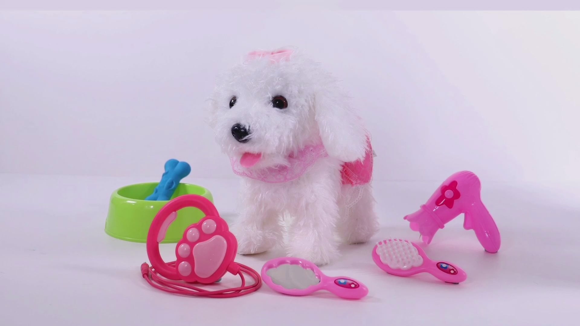 【CHIOT EN PELUCHE ÉLECTRONIQUE POUR ENFANTS】 - Cet adorable chiot en peluche électronique mesure environ 9" grand, le meilleur compagnon à avoir autour children.Includes 1 chien en peluche électronique interactif, 1 laisse télécommandée, 1 peigne, 1 sèche-cheveux, 1 miroir et une gamelle incluse. &et un os en caoutchouc souple pour nourrir un faux chien.